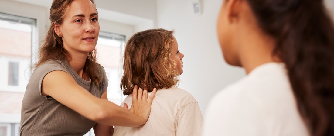 - Börja med att ställa dig bakom personen och luta hen framåt så att huvudet lutar nedåt.